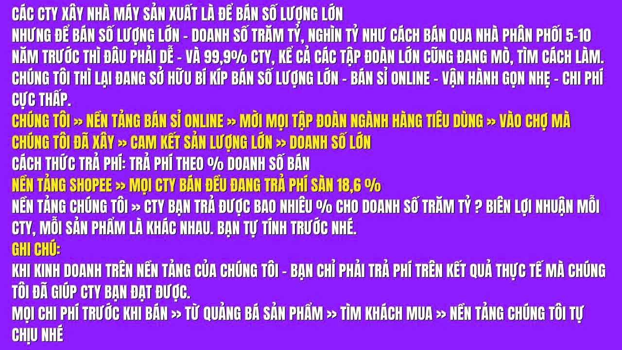 8) Nền tảng có cho bán lẻ không >> Không >> Đây là nền tảng bán sỉ >> Muốn bán lẻ thì bán trên Shopee, Lazada