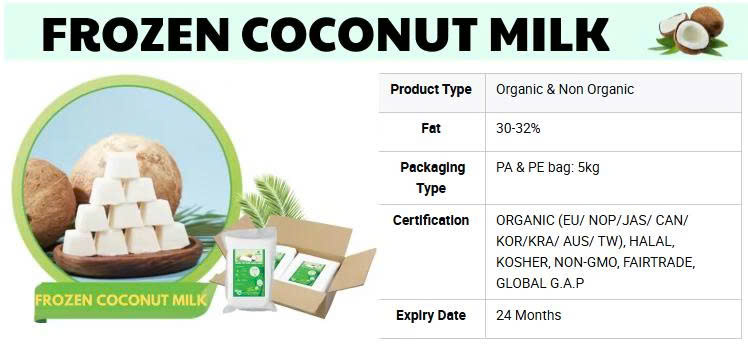Truong Hung Export | Vietnamese consumer goods and agricultural products | Frozen coconut milk | Market-Leading Price