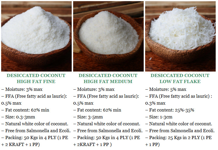 In addition, desiccated coconut is also classified by fat content.
