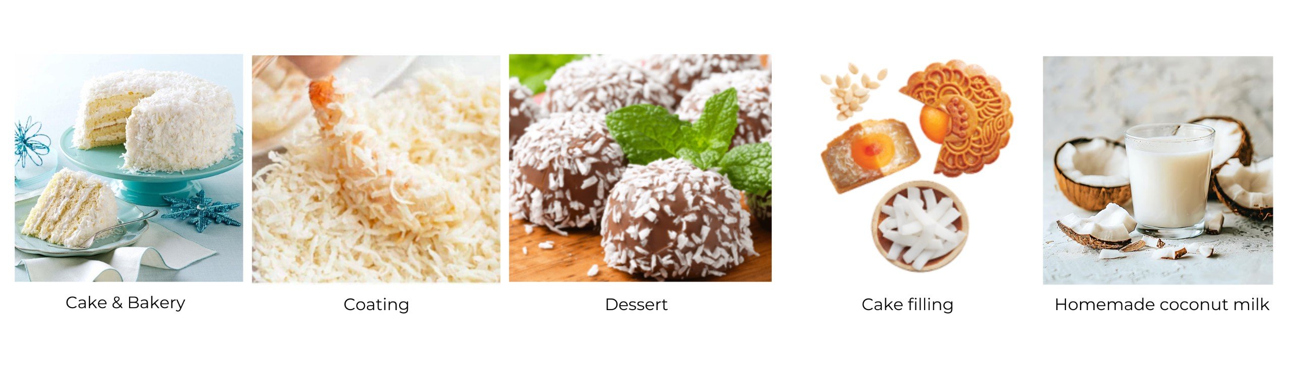 Desiccated coconut products can be applied in fields such as: