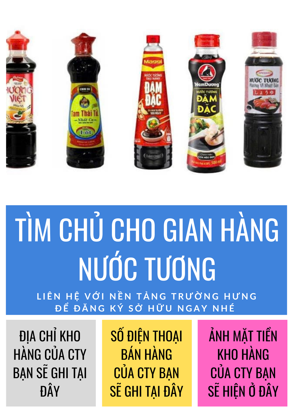 Nền tảng Trường Hưng cần tìm chủ cho gian hàng nước tương (chinsu, tam thái tử, hương việt, maggi, phú sĩ, nam dương, đại tiết kiệm, đặc đài loan, haday, tamari,...)